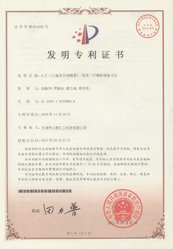 天津眾泰材料科技有限公司(以下簡(jiǎn)稱“眾泰”),是一家“以先進(jìn)功能性聚酰亞胺單體研發(fā)生產(chǎn)為核心,致力于推動(dòng)全球聚酰亞胺材料產(chǎn)業(yè)發(fā)展”為使命的創(chuàng)新型高新技術(shù)企業(yè)。眾泰研制的聚酰亞胺單體目前已廣泛應(yīng)用于無(wú)色透明柔性聚酰亞胺薄膜、柔性顯示材料、5G新材料等諸多高科技領(lǐng)域產(chǎn)品的生產(chǎn)。